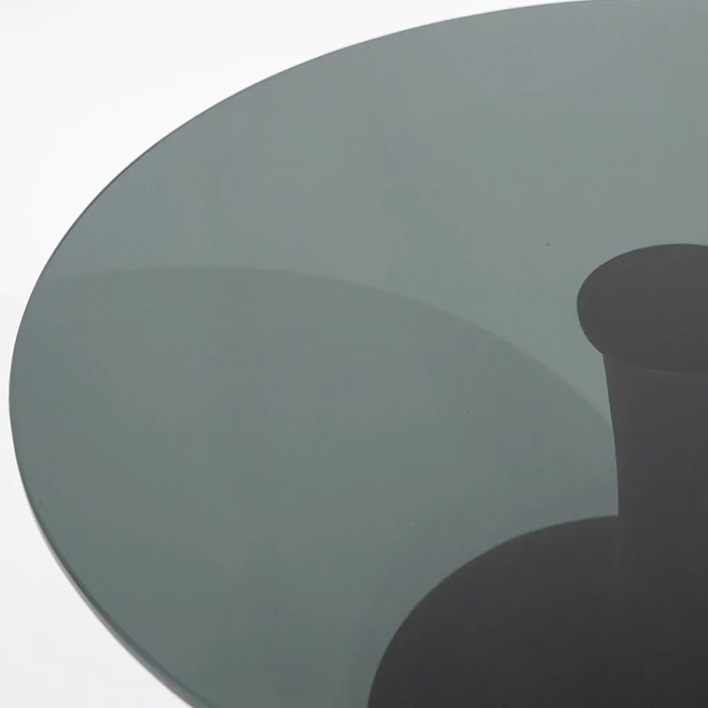 De grote broer van de bijzettafel Boogie. Hij heeft een groter glasblad maar is 5 cm lager. Je kunt beide tafels heel leuk combineren bij een grote zithoek. De bijzettafel Boogie S kun je net over het glasblad van zijn grote broer schuiven zodat je een speelse uitstraling creeert. Ideaal om de kleine bijzettafel weg te halen wanneer hij nodig is op een andere plek, zoals bij feestjes en verjaardagen. De bijzettafel Boogie kan ook heel goed single vanwege zijn 70 cm doorsnede. In een iets kleinere ruimte is hij ruim voldoende om als salontafel te dienen. De voet is uitgevoerd in hout en zwart afgewerkt, sierlijk onder het glazen blad. De kenmerken rond met glas vallen helemaal onder de laatste trends.