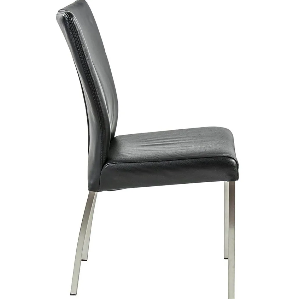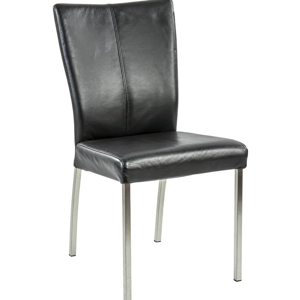 Straluma Eetkamerstoel zwart lederen zitting met RVS poten> Eetkamerstoelen