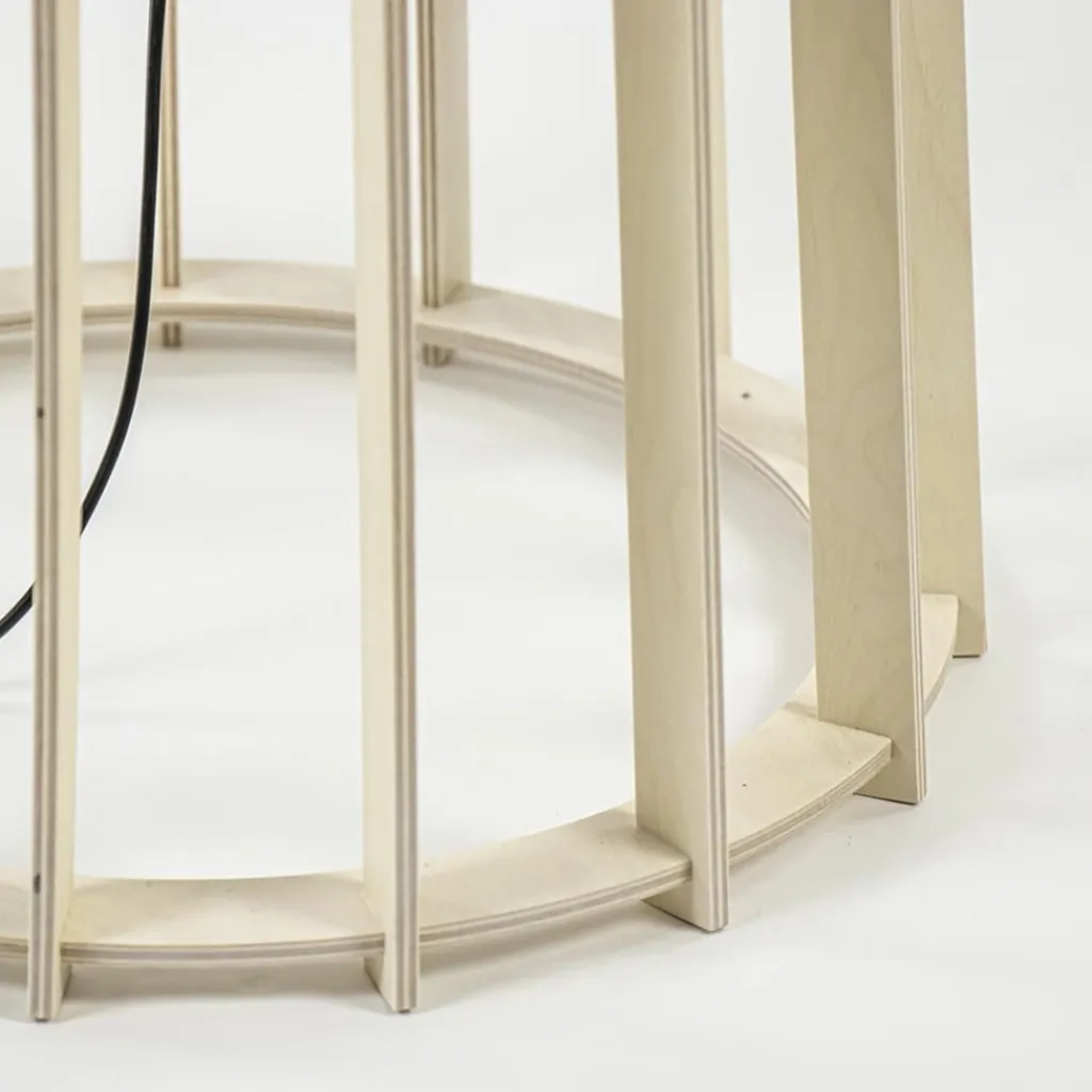 Een stijlvolle lampvoet die prima geschikt is voor diverse woonstijlen. De vloerlamp wordt geleverd exclusief kap zodat u deze verder naar wens kunt afmaken. Doordat de lamp is uitgevoerd in blank hout is er veel te combineren. De lampvoet loopt taps toe van onder naar boven. De losse houten lamellen worden ondersteund door drie houten ringen waarbij in de bovenste ring een fitting is bevestigd. Hier plaatst u gemakkelijk de kap op door de fittingring los te draaien. De houten vloerlamp heeft veel snoer binnenin de voet, maar heeft nog een losse lengte van 200 cm, en een schakelaar op 50 cm van de lamp.