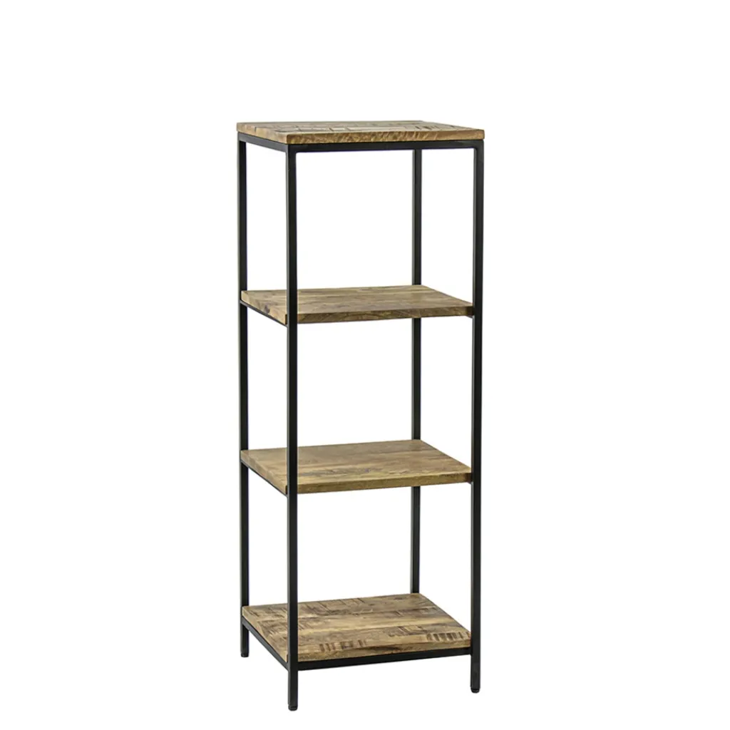 Dit kastje is een leuke toevoeging aan het interieur. Het vierkante kastje bestaat uit een zwart metalen frame met mango houten planken. Deze combinatie geeft het kastje een stoere en robuuste look die mooi is toe te passen in diverse woonstijlen. Het kastje is in 3 maten verkrijgbaar en zijn ook leuk als set te combineren.