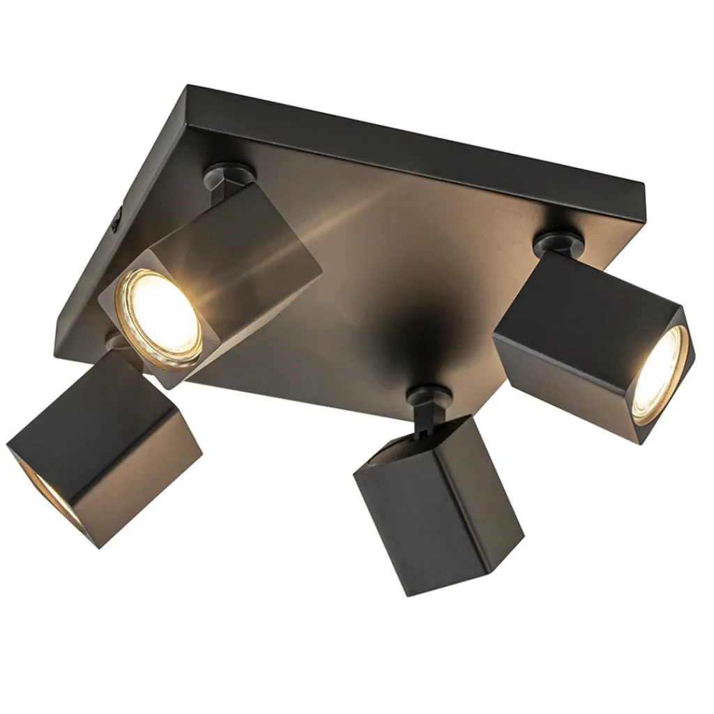 Straluma Opbouwspot 4-lichts vierkant zwart verstelbaar> Plafondlampen|Opbouwspots