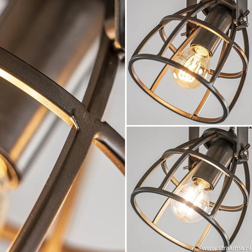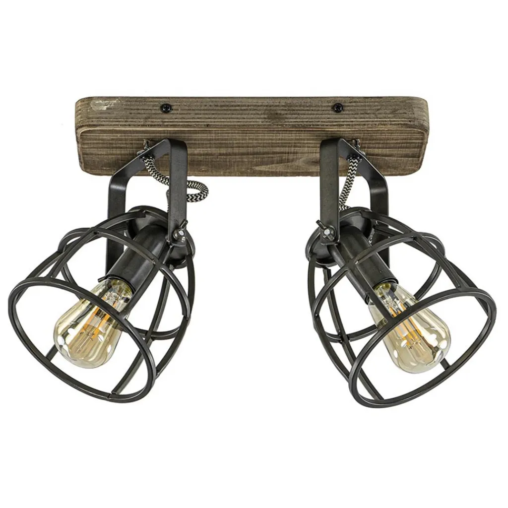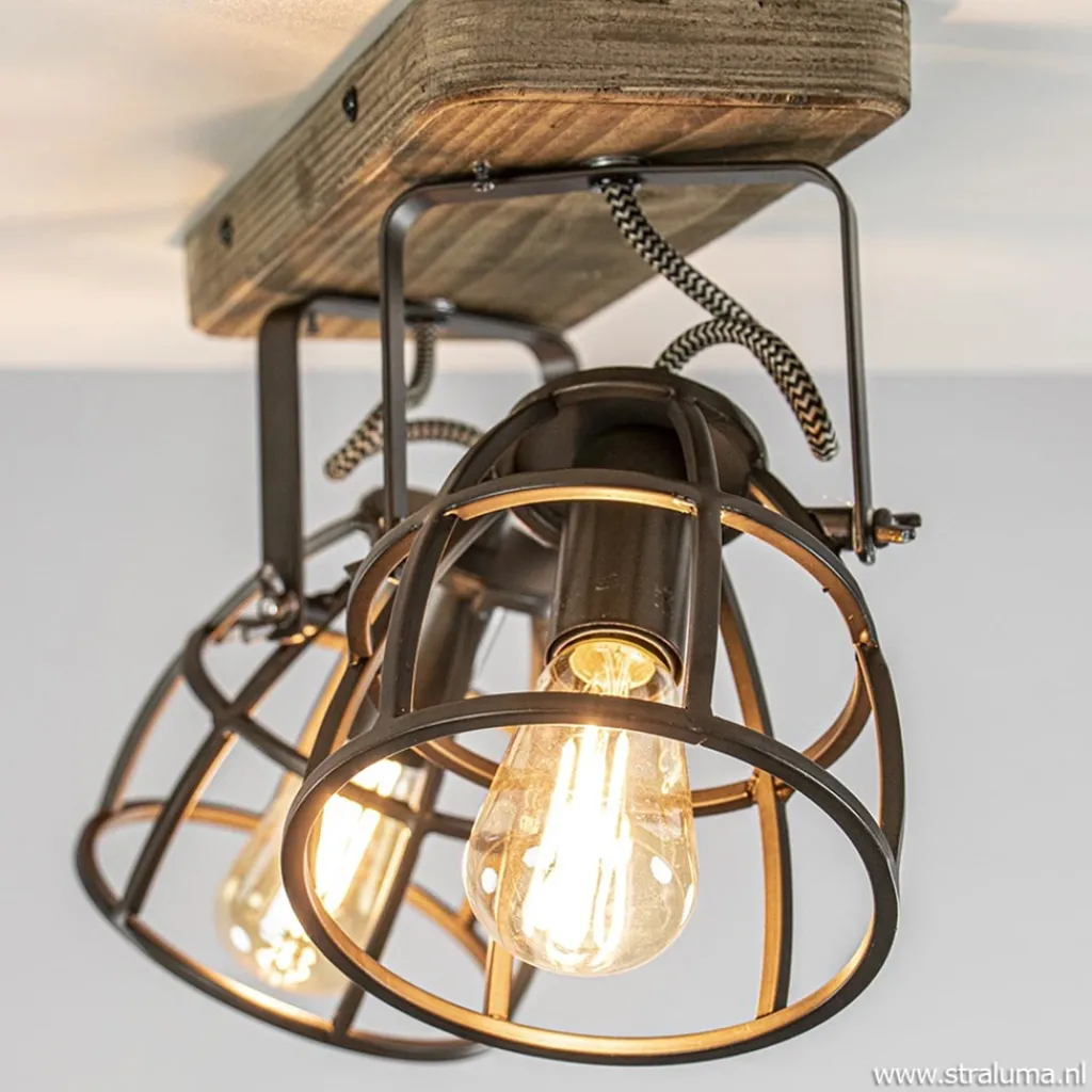 Straluma Plafondspot 2-L korf zwart/hout industr.> Kooilampen|Woonkamerlampen