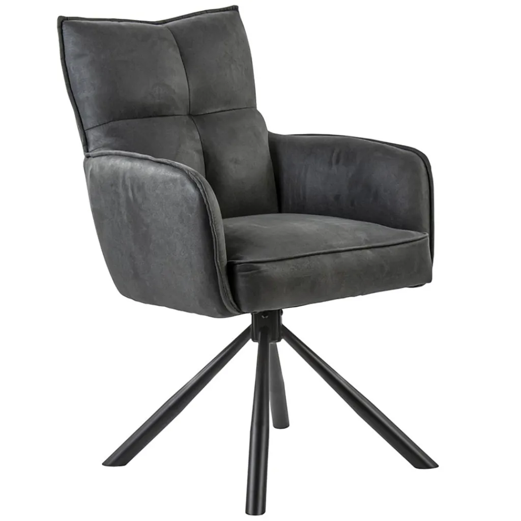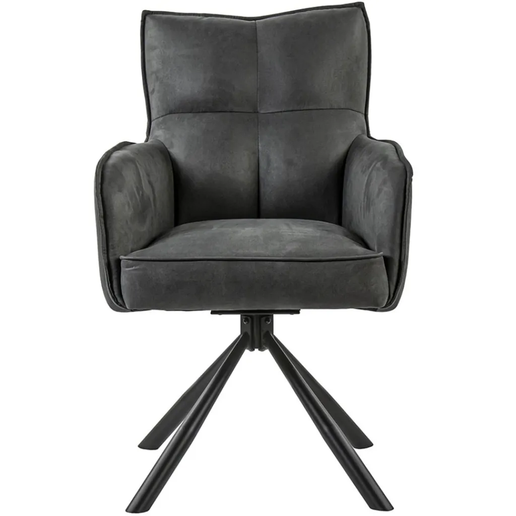 Deze stijlvolle eetkamerstoel zorgt voor een fijn comfort tijdens het dineren. De stoel is 180° draaibaar en is voorzien van een return-system. De armstoel heeft een stoffen zitting die is uitgevoerd in het antraciet. Dit is verder mooi gecombineerd met chique zwarte poten.