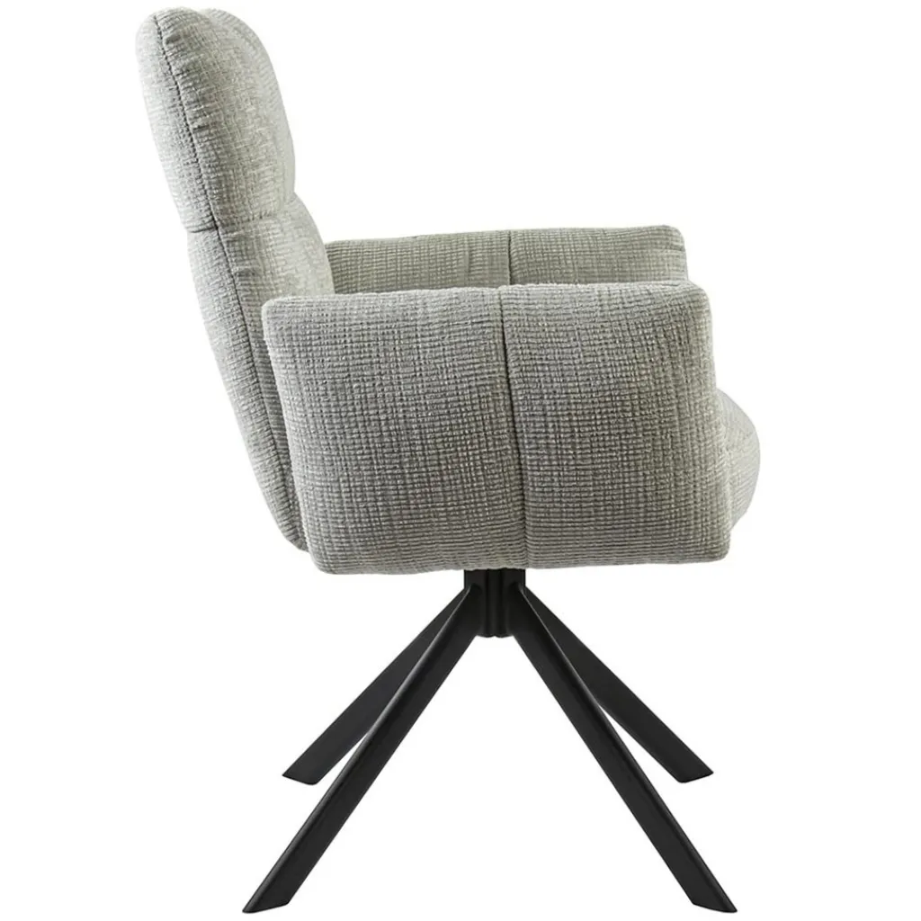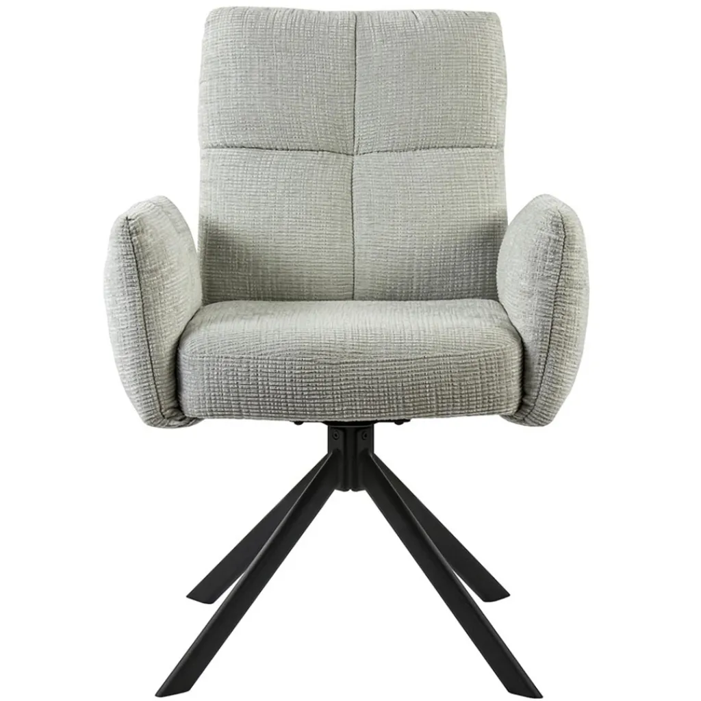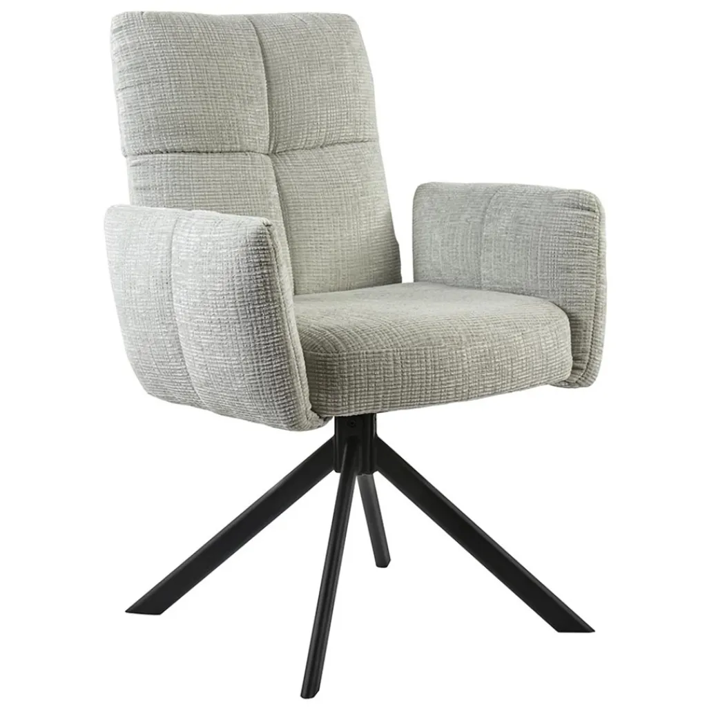 Deze stijlvolle eetkamerstoel zorgt voor een fijn comfort tijdens het dineren. De stoel is 180° draaibaar en is voorzien van een return-system. De armstoel heeft een stoffen zitting die is uitgevoerd in het pearl. Dit is verder mooi gecombineerd met chique zwarte poten.