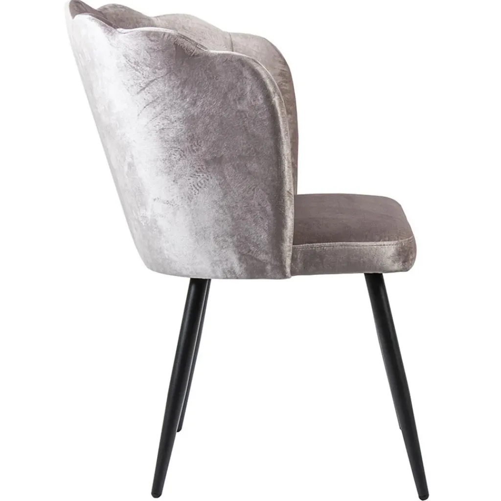 Een trendy eetkamerstoel die helemaal past bij de huidige trends. Van luxury tot chique, deze stoel past bij allemaal. De eettafelstoel heeft een stoffen zitting die is uitgevoerd in het velours. De slanke pootjes zijn van metaal en voorzien van een zwarte coating. De rugleuning loopt iets verder door aan de zijkant wat een goede ondersteuning biedt. Een fijne stoel om lekker op te dineren of borrelen.