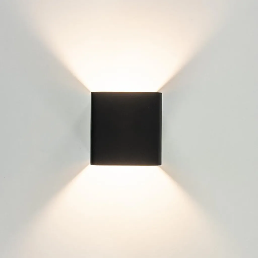 Een minimalitisch design met een sfeervol effect. Deze kleine wandlamp zorgt door het zandloper effect op de muur voor een fijne sfeerverlichting. De zwart met gouden wandlamp is vierkant en van binnen voorzien van LED verlichting. Het LED geeft met 2700 Kelvin warm witte verlichting en zorgt met 600 lumen voor een prima lichtopbrengst. Het matte zwart zorgt dat de vierkante LED wandlamp mooi overloopt op een donkere wand, of juist meer opvalt op een contrasterende kleur. De mat zwart met gouden kubus heeft geen snoer en dient direct op een stroompunt te worden aangesloten. Ideaal voor extra sfeer in de woonkamer, hal of slaapkamer.
