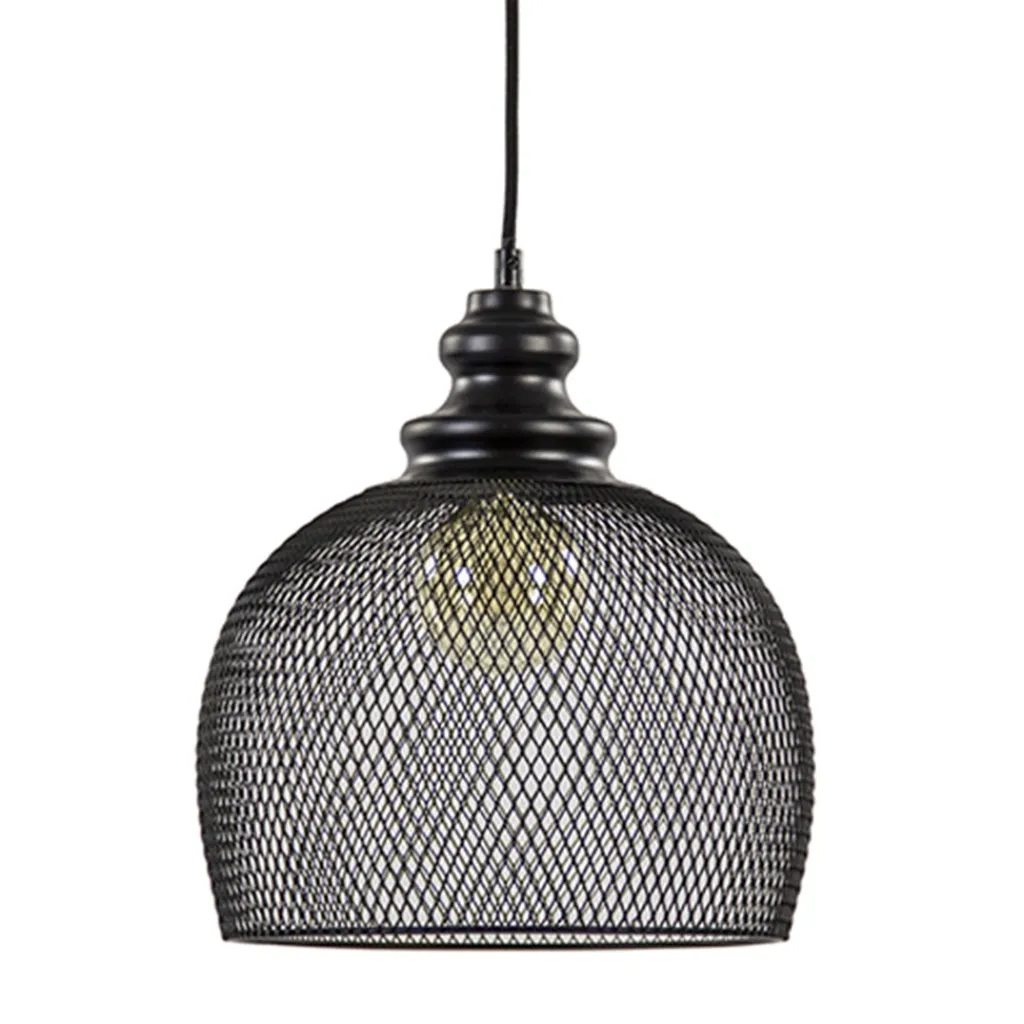 Deze mat zwarte hanglamp zorgt door het gaas voor een gezellige sfeer met de juiste lichtbron. Het metalen gaas laat genoeg licht door maar zorgt ook dat de lichtbron niet geheel direct zichtbaar is. De metalen kap hangt aan een zwart stofomwonden snoer dat in hoogte is te verstellen en wordt met een ronde plafondbevestiging opgehangen. De gaas hanglamp is een leuke toevoeging boven bijvoorbeeld een bijzettafel, maar hangt ook erg leuk in de hal.