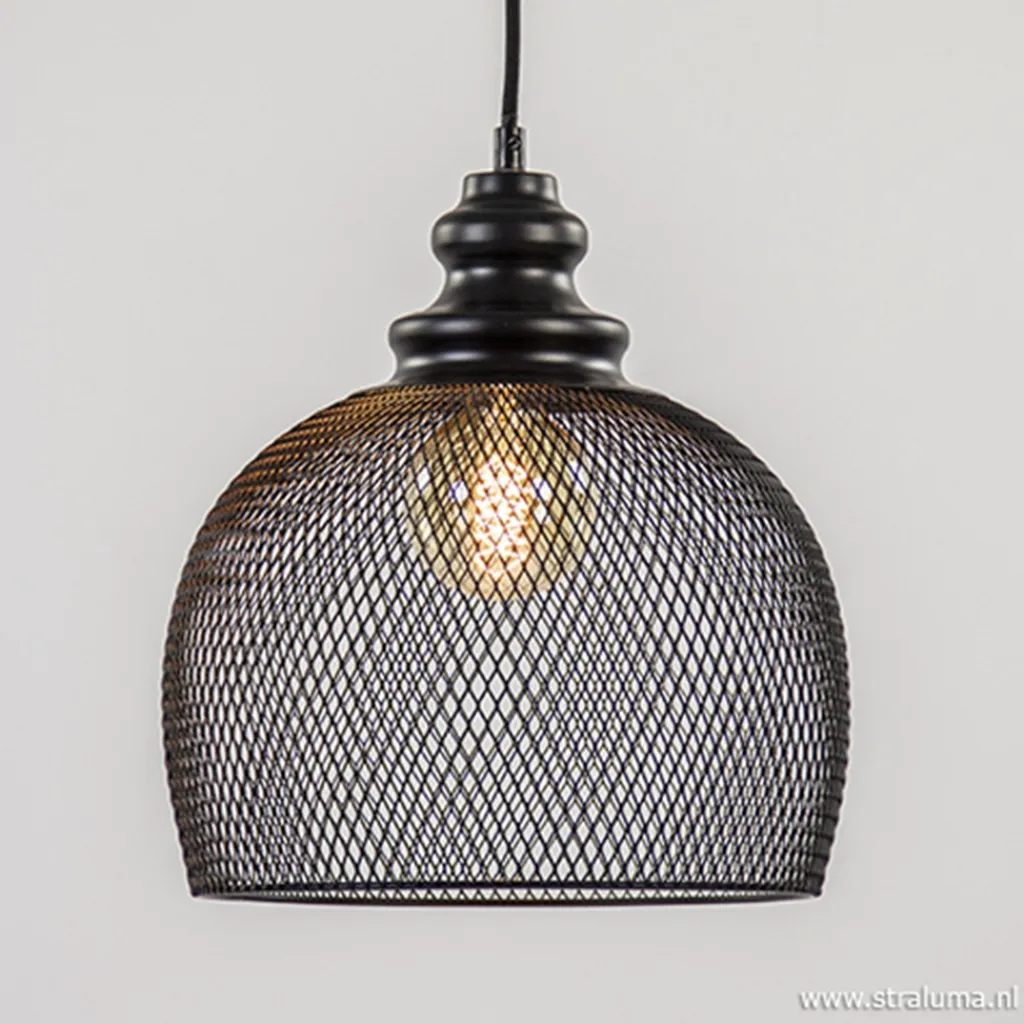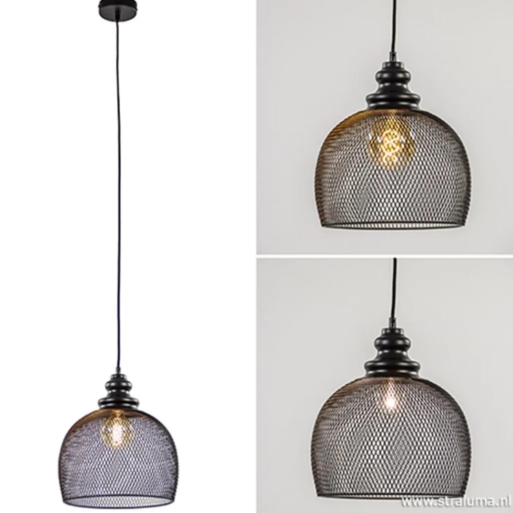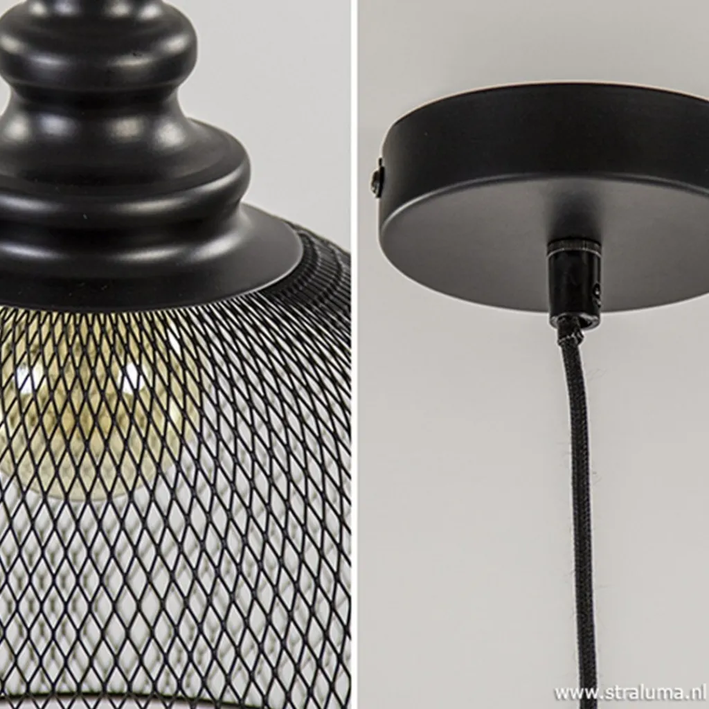 Straluma Zwarte hanglamp Karla met gaas> Light and Living|Woonkamerlampen