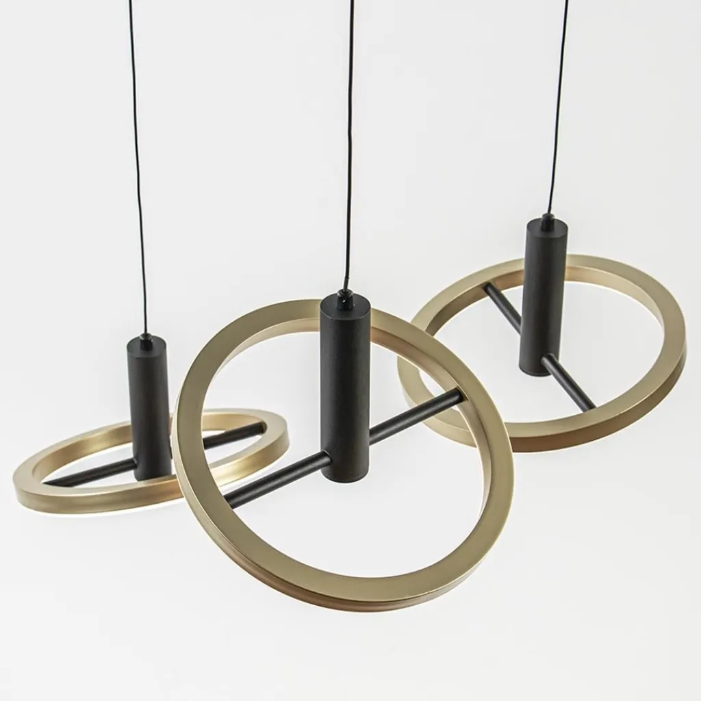 Straluma 3-Lichts LED hanglamp ringen rond zwart/goud dimbaar> Hanglampen|Eettafellampen