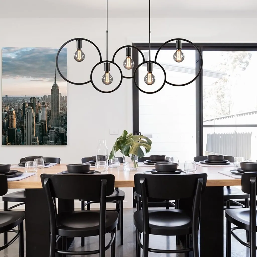 Straluma 5-Lichts eettafelhanglamp ringen mat zwart> Eettafellampen|Eetkamerverlichting