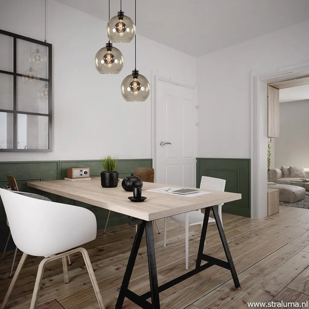 Straluma Hanglamp 3-lichts rond glas smoke 25 cm> Eettafellampen|Pendel Lampen