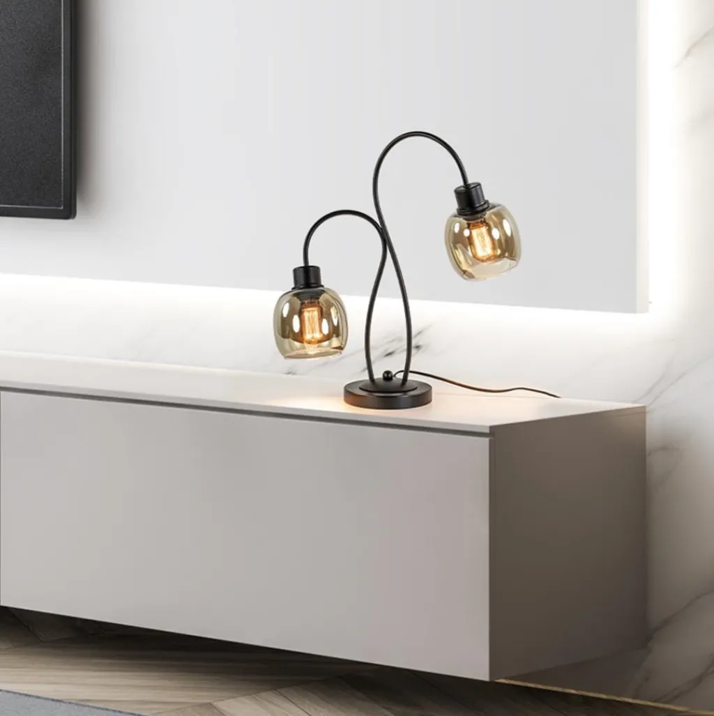 Straluma Klassieke 2-lichts tafellamp zwart met smoke glas> Woonkamerlampen|Slaapkamerlampen