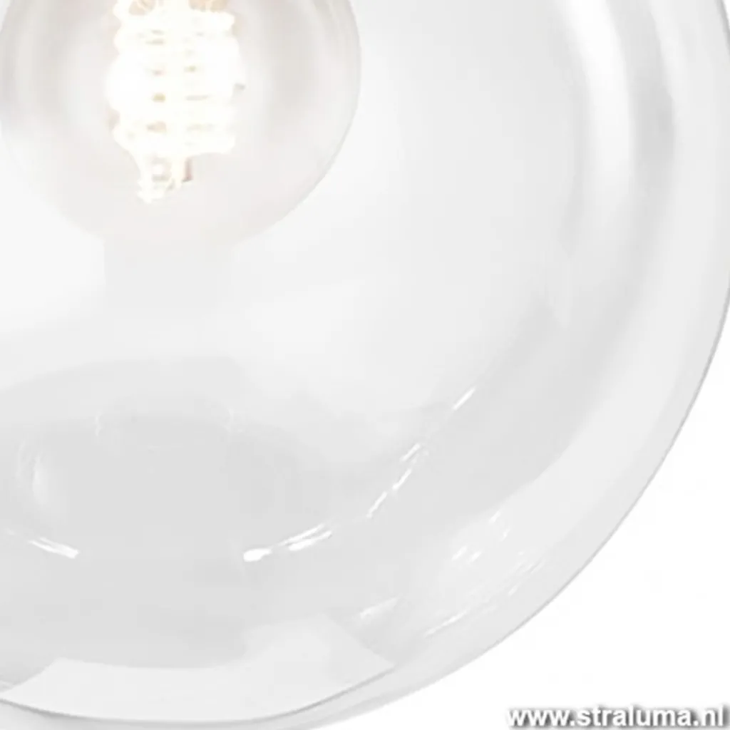 Moderne glazen plafonnière. Door het transparante glas blijft deze plafondlamp lekker licht en fris. Een leuke keuze voor een lamp als deze is een kooldraadlamp. Ideaal in de toilet, hal of slaapkamer.