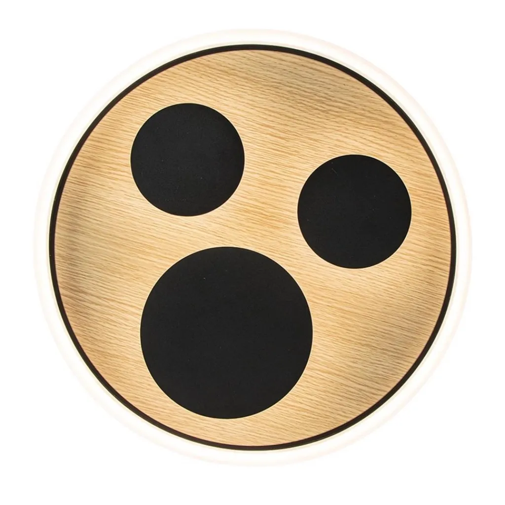 Deze plafondlamp zorgt voor sfeer en functie in het interieur. De plafondlamp heeft een doorsnede van 40 cm en is voorzien van 3 LED lichtpunten. De ronde plafondlamp heeft een metalen armatuur dat is afgewerkt met een houtlook plaat. Deze combinatie maakt de plafondlamp prima geschikt voor diverse woonstijlen. Door z’n grootte is de lamp mooi toe te passen in een ruimte als de hal of slaapkamer. De mat zwarte LED plafondlamp is voorzien van een 3-standen dimfunctie. Dit houdt in dat u de lamp met de gewone wandschakelaar kunt dimmen, er is geen externe dimmer voor nodig. De techniek zit verwerkt in de lamp zelf en dimt een stap verder zodra u de wandschakelaar overhaalt.