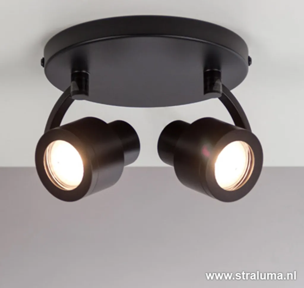 Straluma Moderne plafondspot mat zwart 2-lichts> Plafondlampen|Opbouwspots