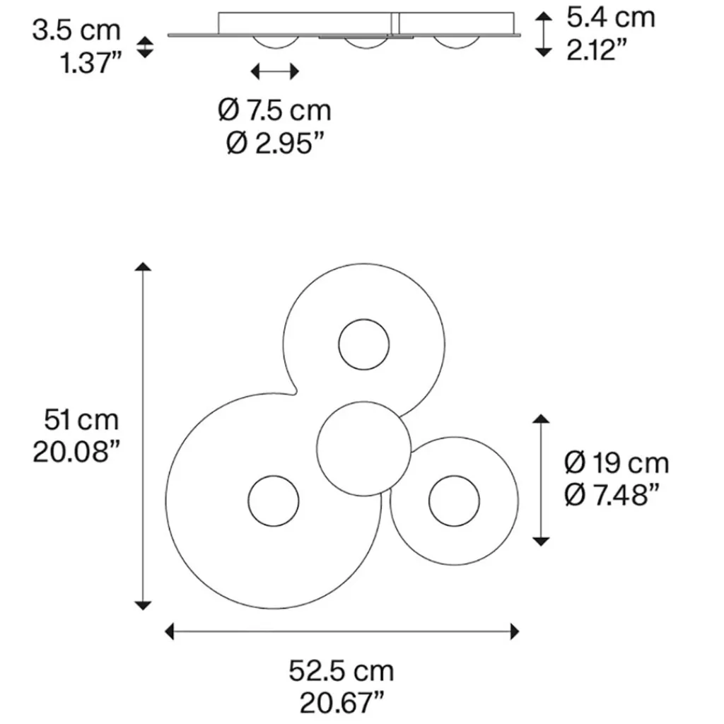 Een plafondlamp van Italiaans design. De plafonnière bestaat uit 3 ronde schijven die samen een geheel vormen. Iedere schijf heeft een andere maat waardoor het geheel een speelse vorm krijgt. In het midden van de schijven bevindt zich een LED unit. Deze geeft zowel direct als indirect licht. De design lamp geeft met 4200 lumen een flinke lichtopbrengst. De ronde schijven zijn afgewerkt in het glossy brons wat een strak klassiek uiterlijk geeft aan de plafondlamp.
