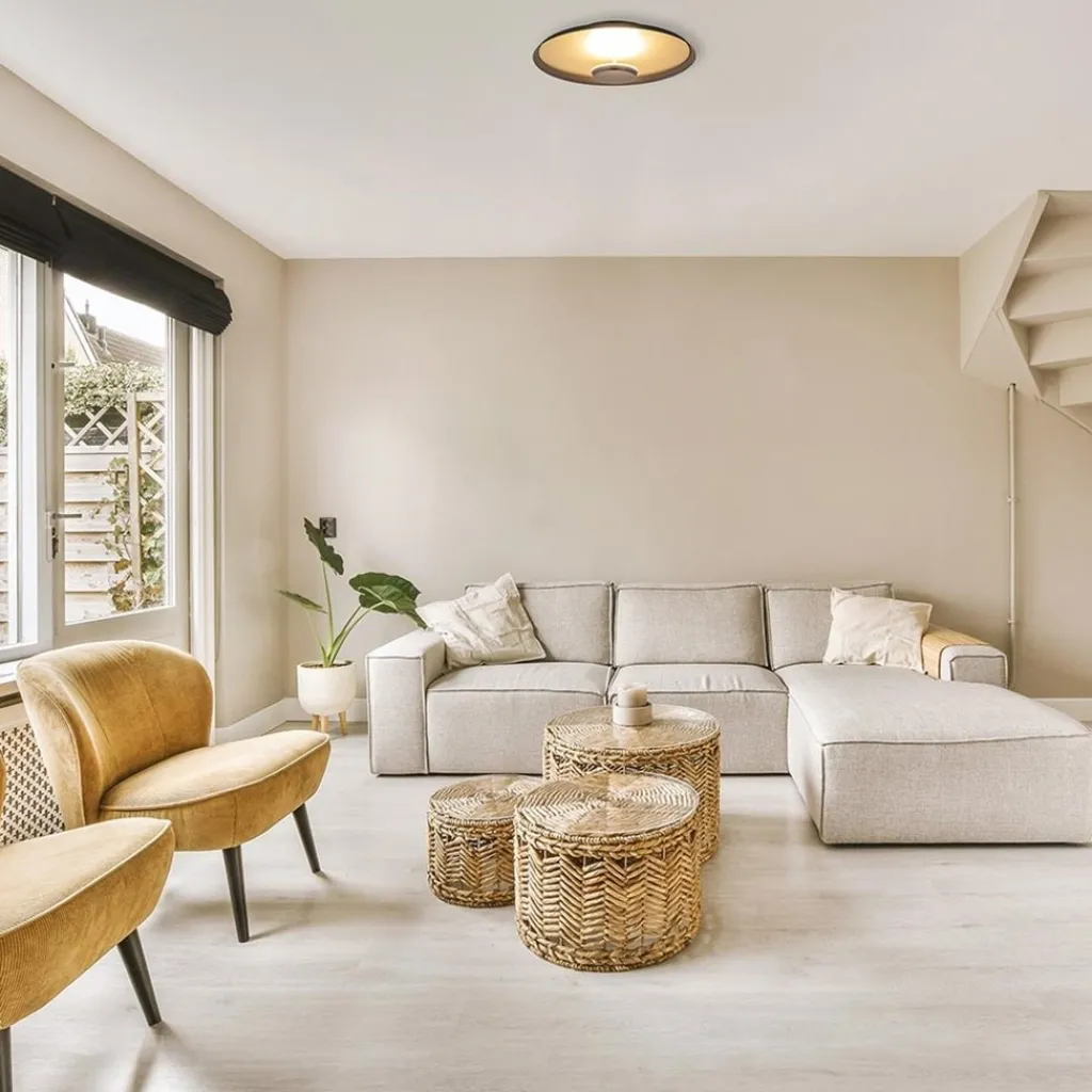 Deze mooie plafondlamp met warme uitstraling is super stoer. De metalen plafondlamp heeft een mat zwarte buitenkant en een gouden binnenkant. Doordat de LED verlichting naar boven schijnt wordt het gereflecteerd door de goudkleurige schaal. De gouden binnenkant heeft de lamp een super warme en sfeervolle uitstraling. Door het lichte metaal is de lamp geschikt voor ieders plafond. Stijlvol, sfeervol en strak, echt een interieur topper.