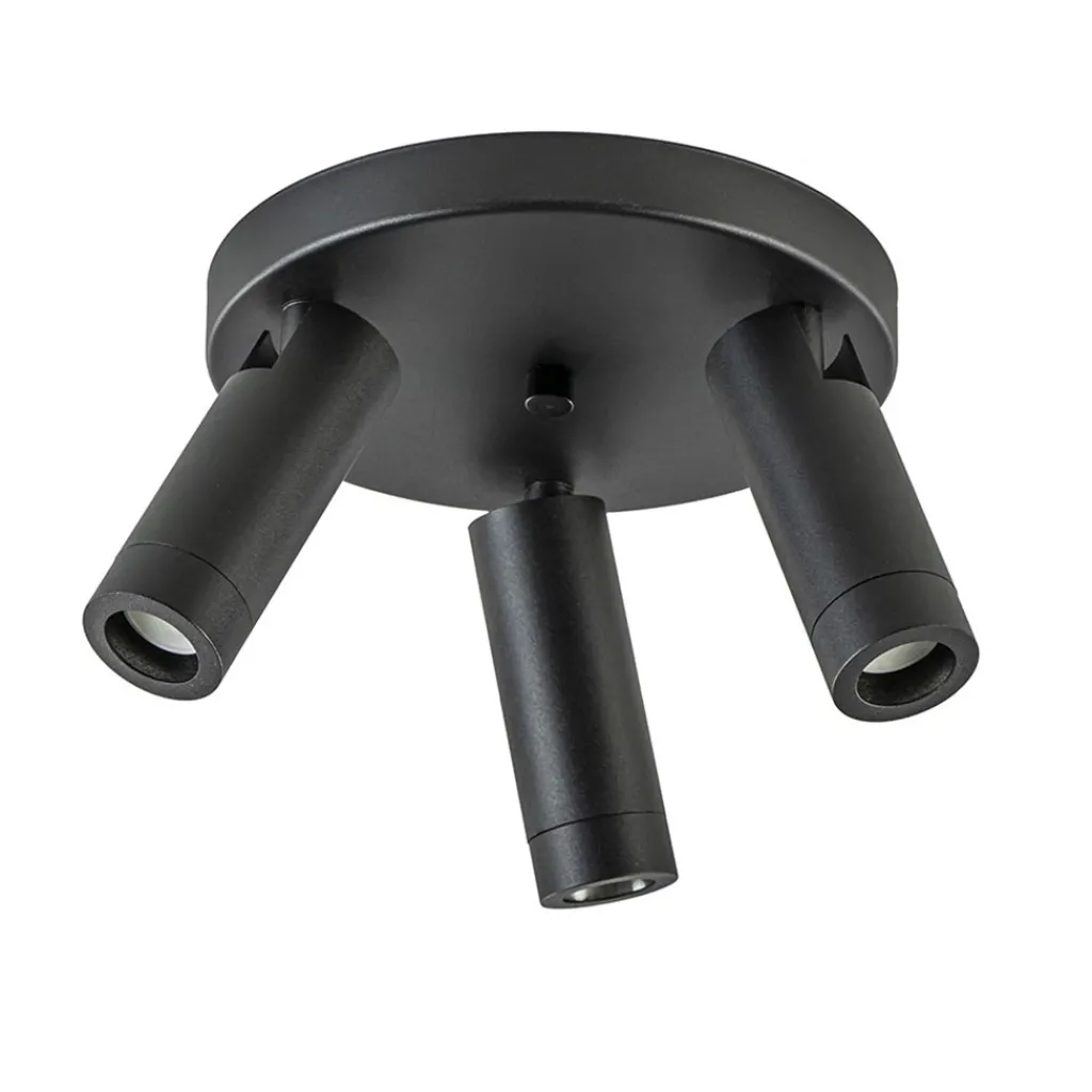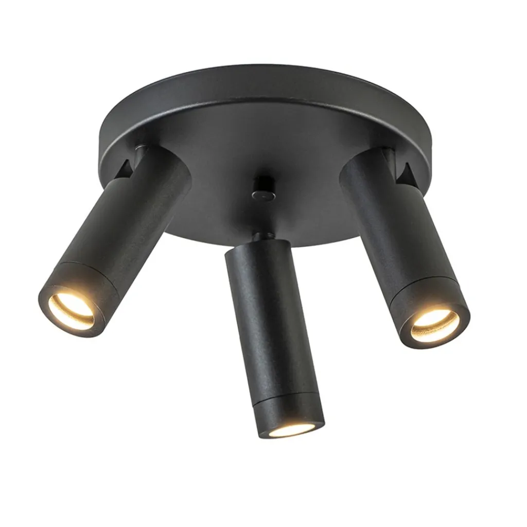 Een moderne ronde 3-lichts plafondspot met strakke vormgeving. Deze 3-lichts plafondspot is gemaakt van mat zwart metaal. De spotjes zijn los van elkaar verstelbaar. Ideaal om meerdere aspecten van een ruimte tegelijk uit te lichten. De lamp past goed in een hal of de slaapkamer. Het leuke aan deze spot is dat hij wordt geleverd met zowel een mat zwarte als een goudkleurige fitting ring. U kunt er zelfs voor kiezen de fitting ring weg te laten en de 3-lichts spot af te maken met grotere lichtbronnen. Zo kiest u zelf welke look u wilt.