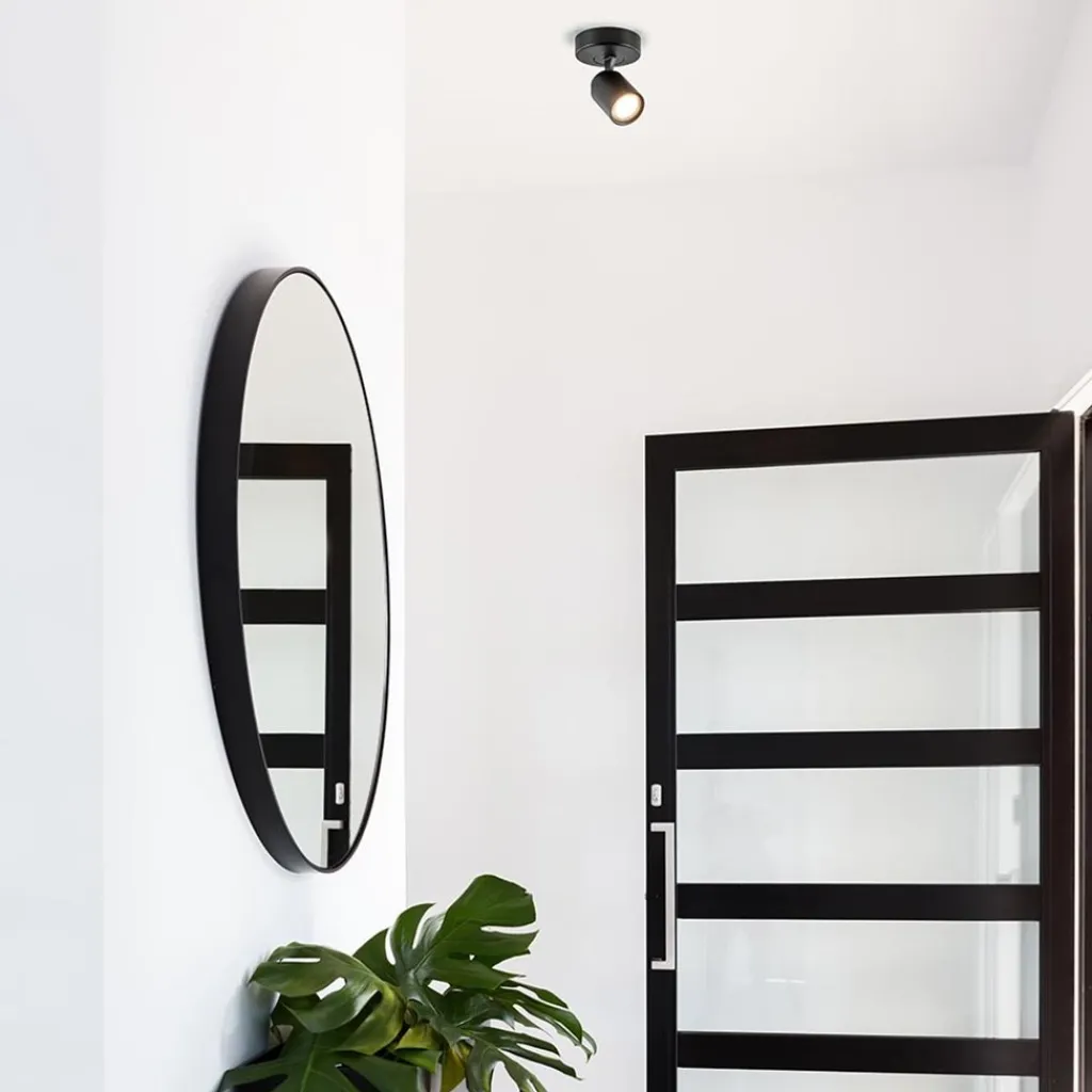 Op zoek naar een elegante zwarte plafond- of wandlamp? Dan is deze zwarte enkellichts opbouwspot rond echt iets voor u! De mat zwarte kleur zorgt voor zowel een chique als stoere toevoeging aan uw interieur. De zwarte 1-lichts spot is multifunctioneel te gebruiken, doordat de zwarte spot in richting versteld kan worden. De kap kan gekanteld en gedraaid worden, ideaal zodat u de spot naar elke gewenste richting kunt plaatse. De zwarte opbouwspot kan als plafondlamp of als wandlamp gebruikt kan worden. De lichtbron kan geplaatst worden door de kap volledig los te draaien.
