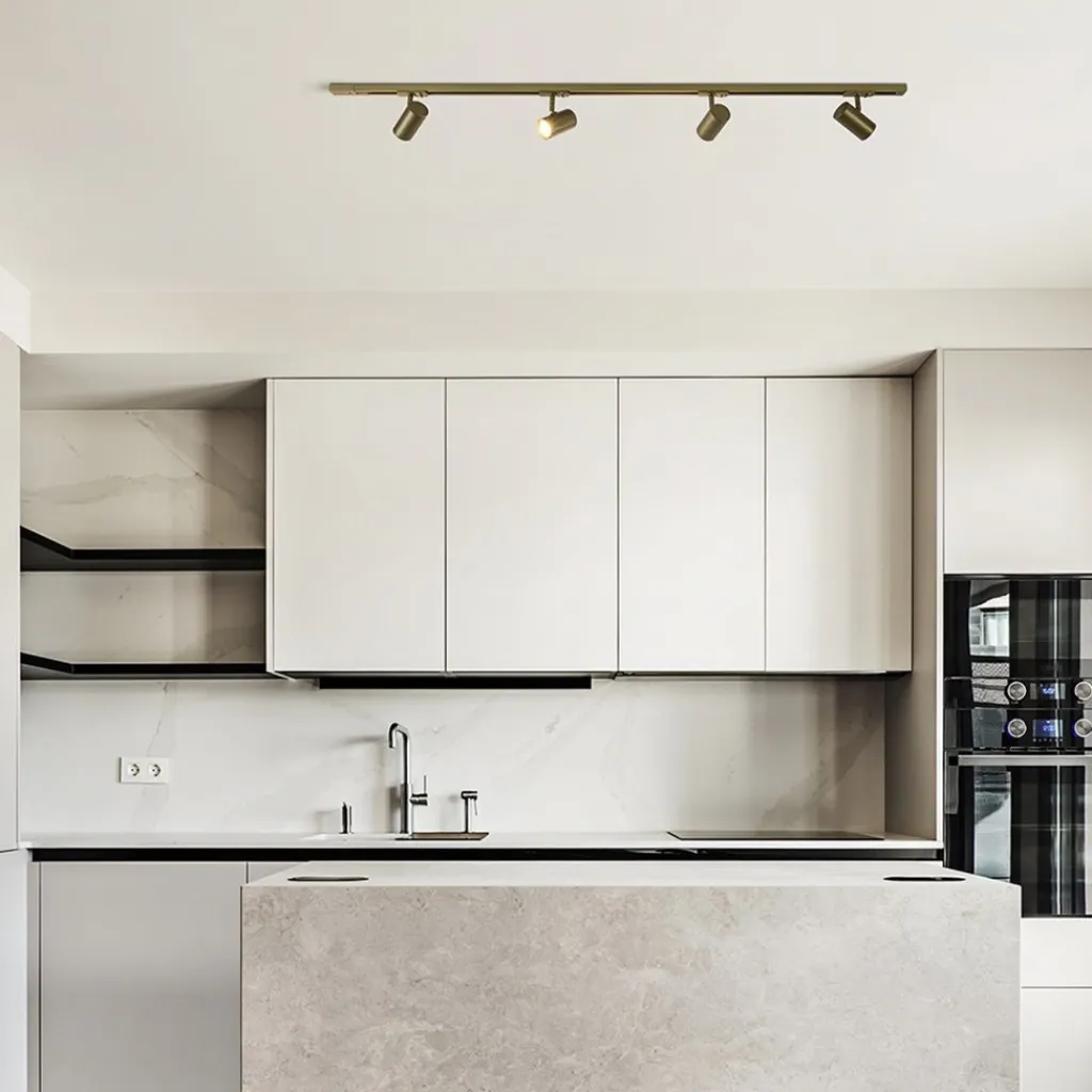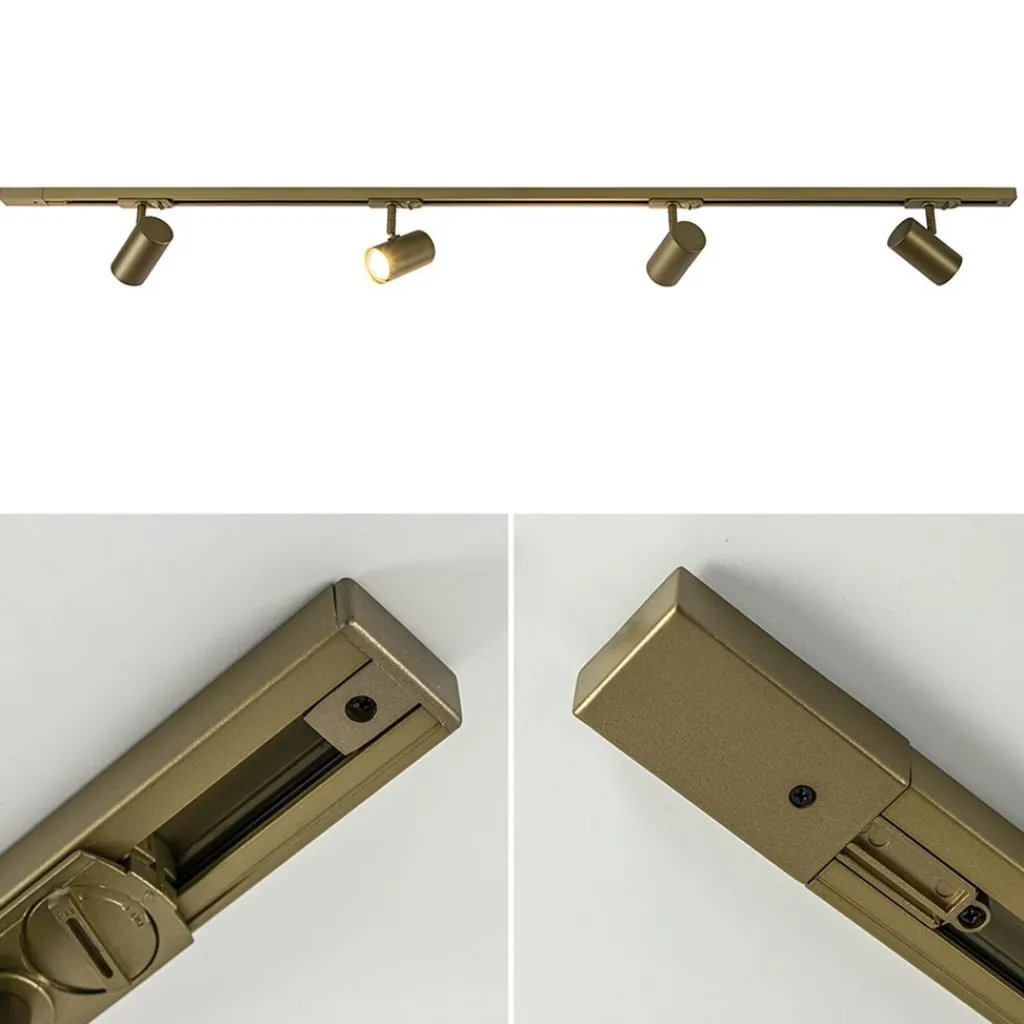 Ideaal om een ruimte extra uit te lichten of meer sfeer aan te brengen. Dit 1-fase railsysteem wordt geleverd inclusief 4 spots, beide uitgevoerd in het brons. De rail heeft een lengte van 150 cm waar de spots gemakkelijk op kunnen worden verdeeld. Druk de spot in de rail en zet hem vast door de knop om te zetten. De spots kunnen verder nog draaien en kantelen. Bepaal dus zelf hoe u het licht wilt verspreiden. Het railsysteem heeft 1-fase, dit houdt in dat alle lampen tegelijk zullen worden in- en uitgeschakeld. Handig voor in een lange hal of slaapkamer, maar ook in de keuken of woonkamer past dit systeem perfect. De smalle rail en de cilindervormige spots geven een strak en modern geheel aan de ruimte. Het bronzen railsysteem is dimbaar met een externe dimmer.
