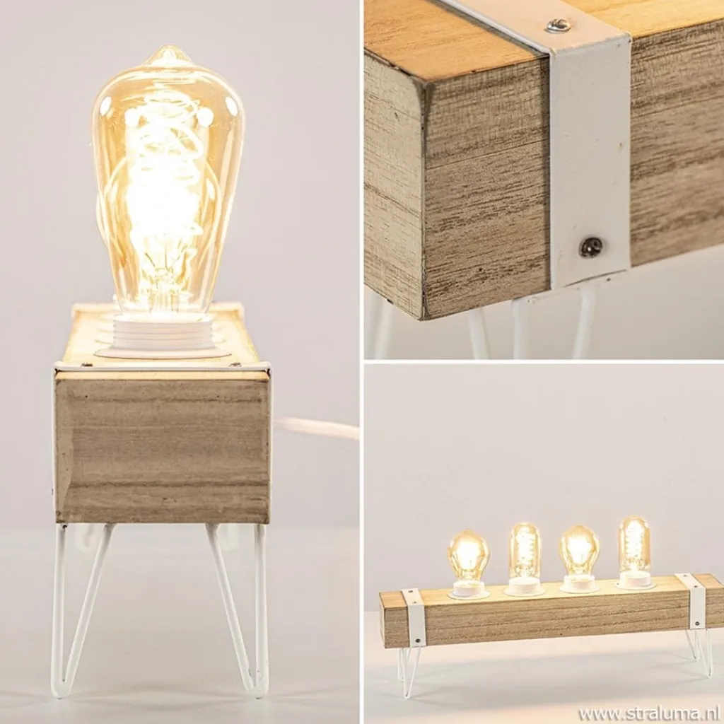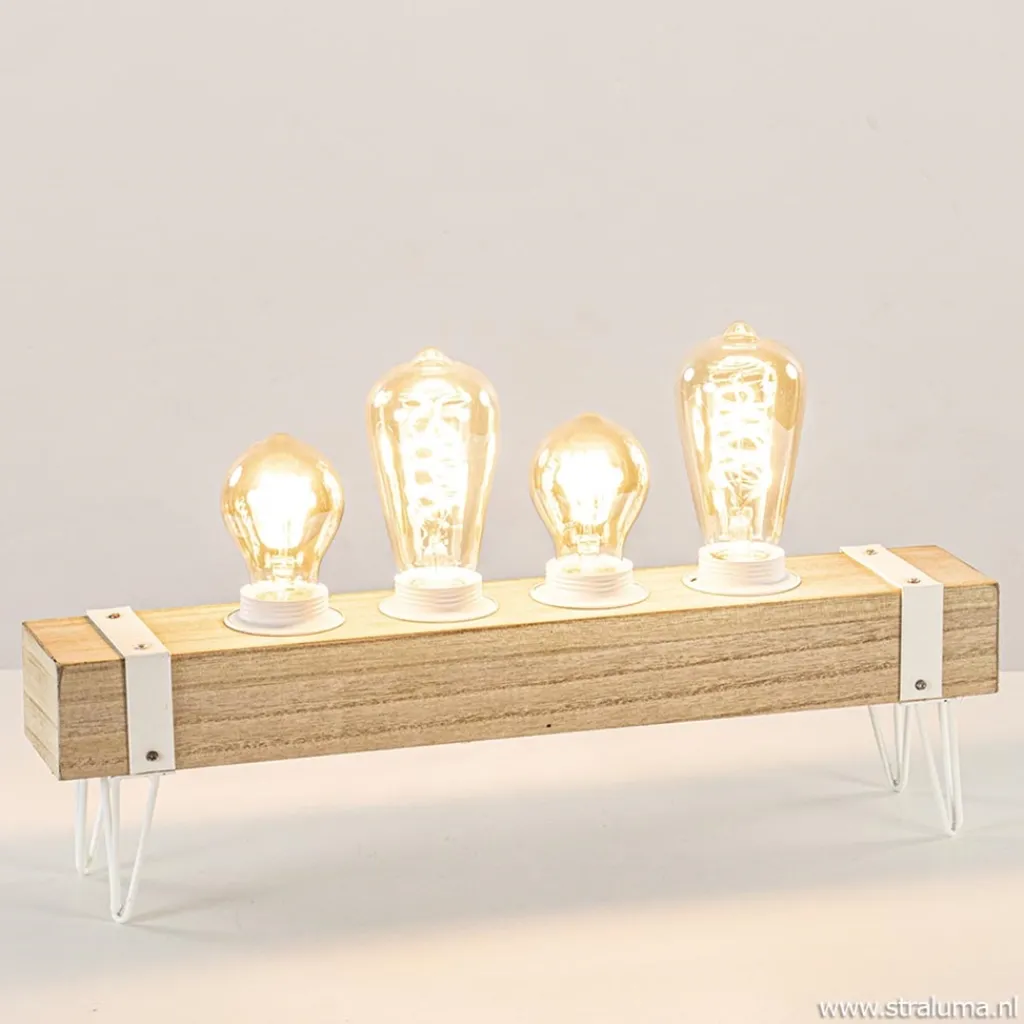 Straluma Tafellamp houten balk met witte pootjes 4-lichts exclusief lichtbron> Slaapkamerlampen|Halverlichting
