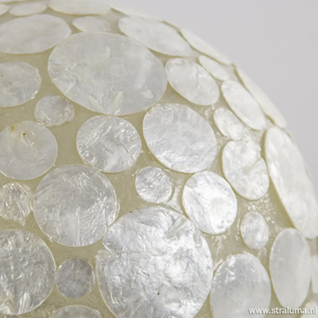Deze sfeervolle bol brengt het strand in huis. De tafellamp is gemaakt van Capiz schelpen en brengt een warme en gezellige sfeer met zich mee. Zowel aan als uit is de schelpenlamp leuk om naar te kijken, maar vooral aan valt de lamp meteen op en geeft een sfeervolle verlichting. Deze bolvormige tafellamp heeft een zwart snoer met schakelaar.
