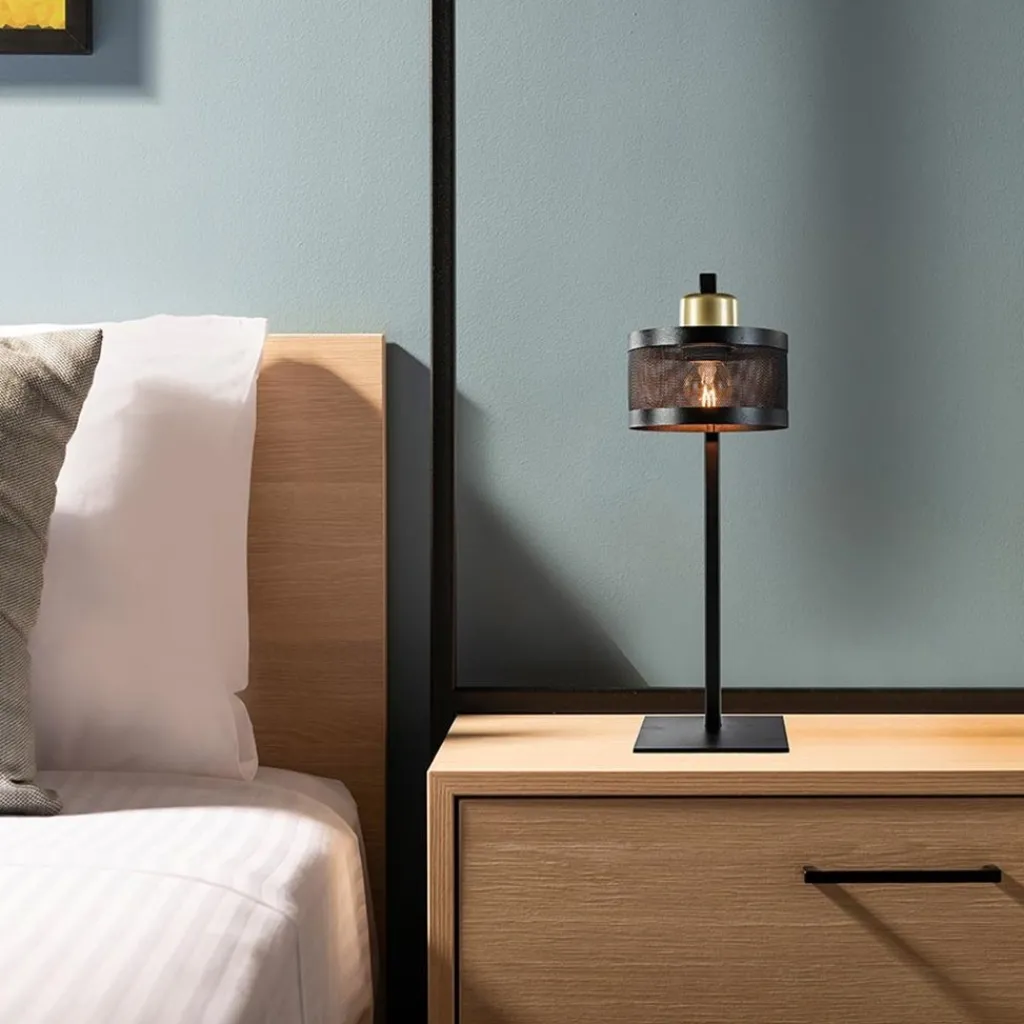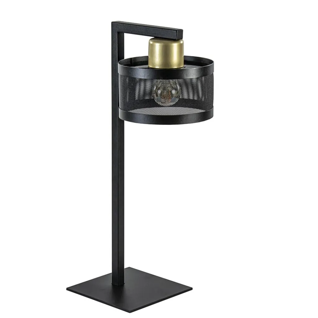 Straluma Tafellamp zwart/goud met ronde kap> Tafellampen|Landelijke Verlichting
