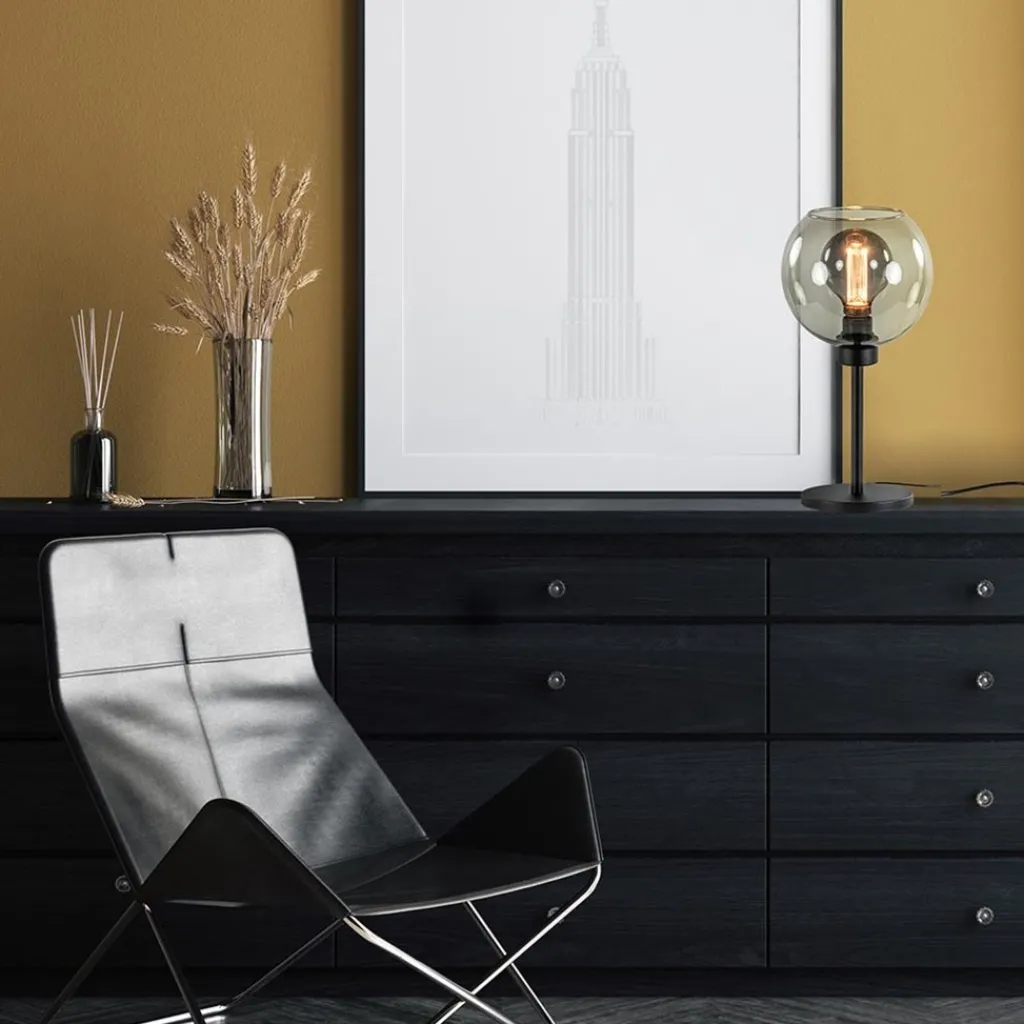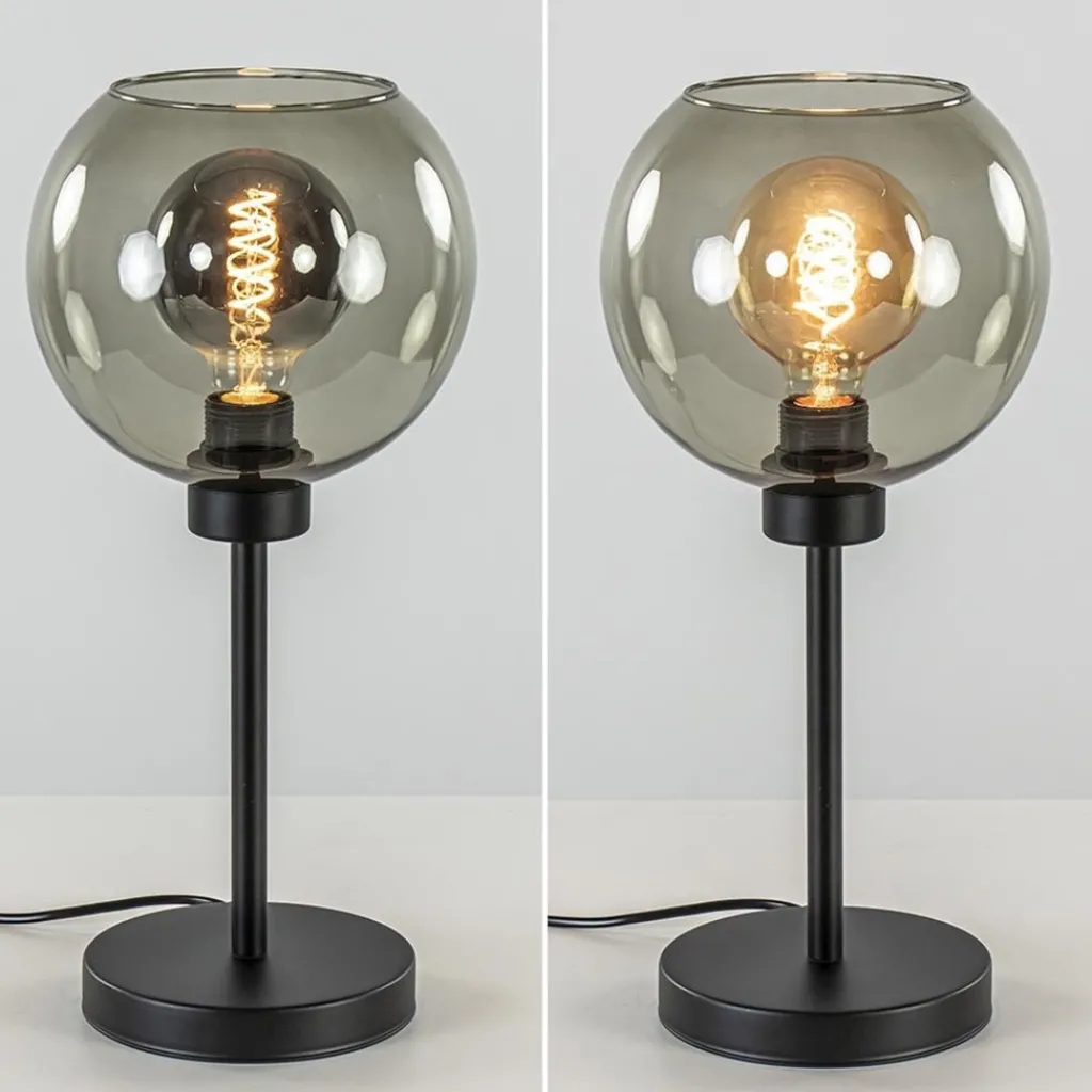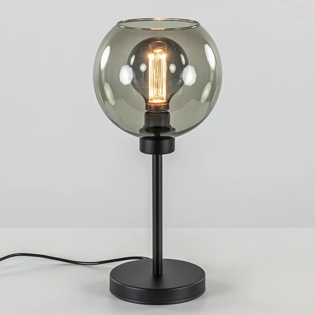 Straluma Tafellamp zwart met smoke glazen bol> Tafellampen|Landelijke Verlichting