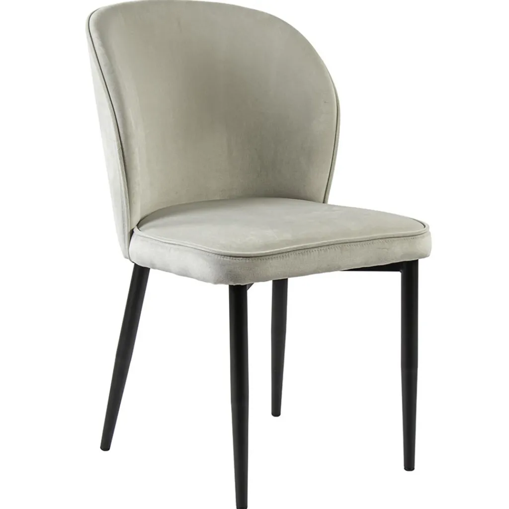 Deze trendy wit velourse eetkamerstoel frist het interieur helemaal op. De stoel heeft een comfortabele zit met een wat hogere rugleuning voor extra steun. De zitting en leuning zijn volledig van stof en uitgevoerd in het gebroken wit. De slanke poten zijn gemaakt van metaal en voorzien van een mat zwarte finish.