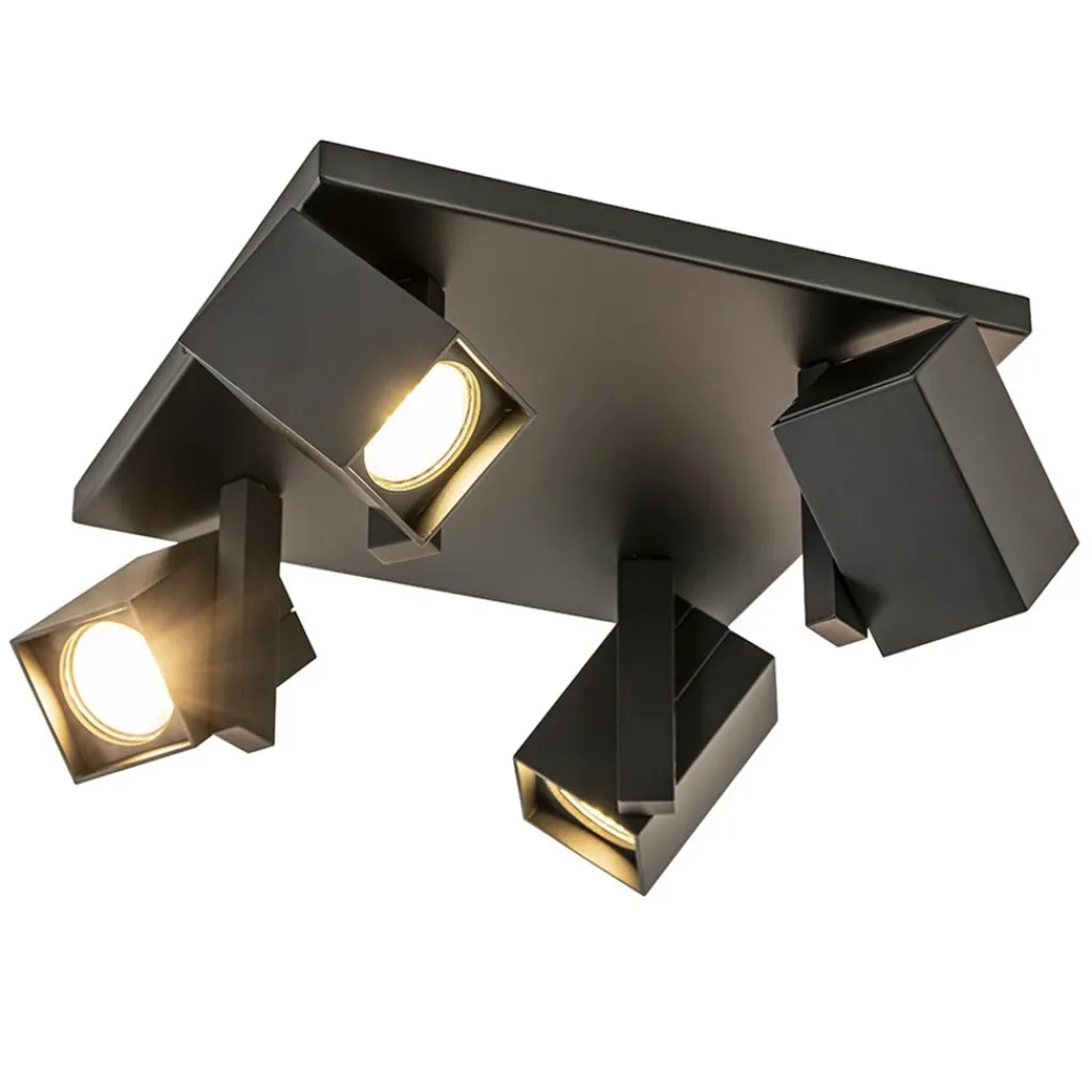 Strak van design en functioneel in gebruik. Deze vierkante opbouwspot is een unieke in zijn soort. Veelal zijn de spots rond maar deze is uitgevoerd in het vierkant/rechthoekig. De spots hebben een afmeting van 5,5×5,5 cm en is 8,5 cm hoog. De spots zijn bevestigd op een smal pootje. De rechthoekige spots kunnen kantelen en het pootje kan draaien. Zo kunt u de 4-lichts plafondlamp helemaal naar wens stellen. Ideaal voor in een woonkamer, keuken of slaapkamer. De vierkante plafondplaat maakt de lamp helemaal af. De moderne plafondspot wordt geleverd exclusief lichtbron.