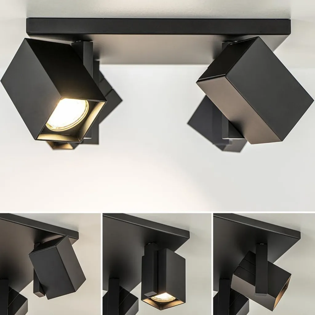 Straluma Vierkante opbouwspot 4L zwart verstelbaar> Opbouwspots|Woonkamerlampen