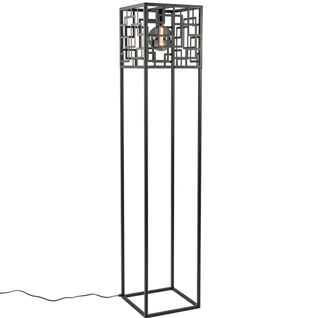 Straluma Vierkante vloerlamp mat zwart metaal> Woonkamerlampen|Vloerlampen