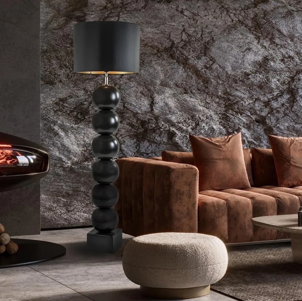Straluma Zwarte vloerlamp bollen met zwarte ronde kap> Vloerlampen|Schemerlampen